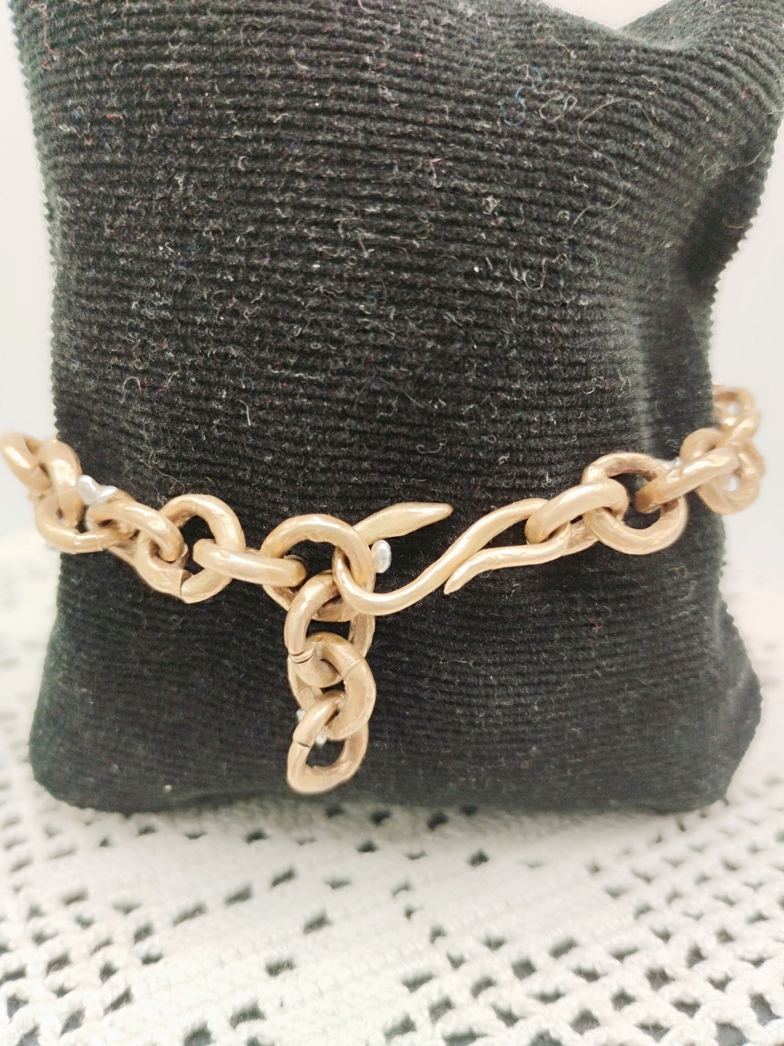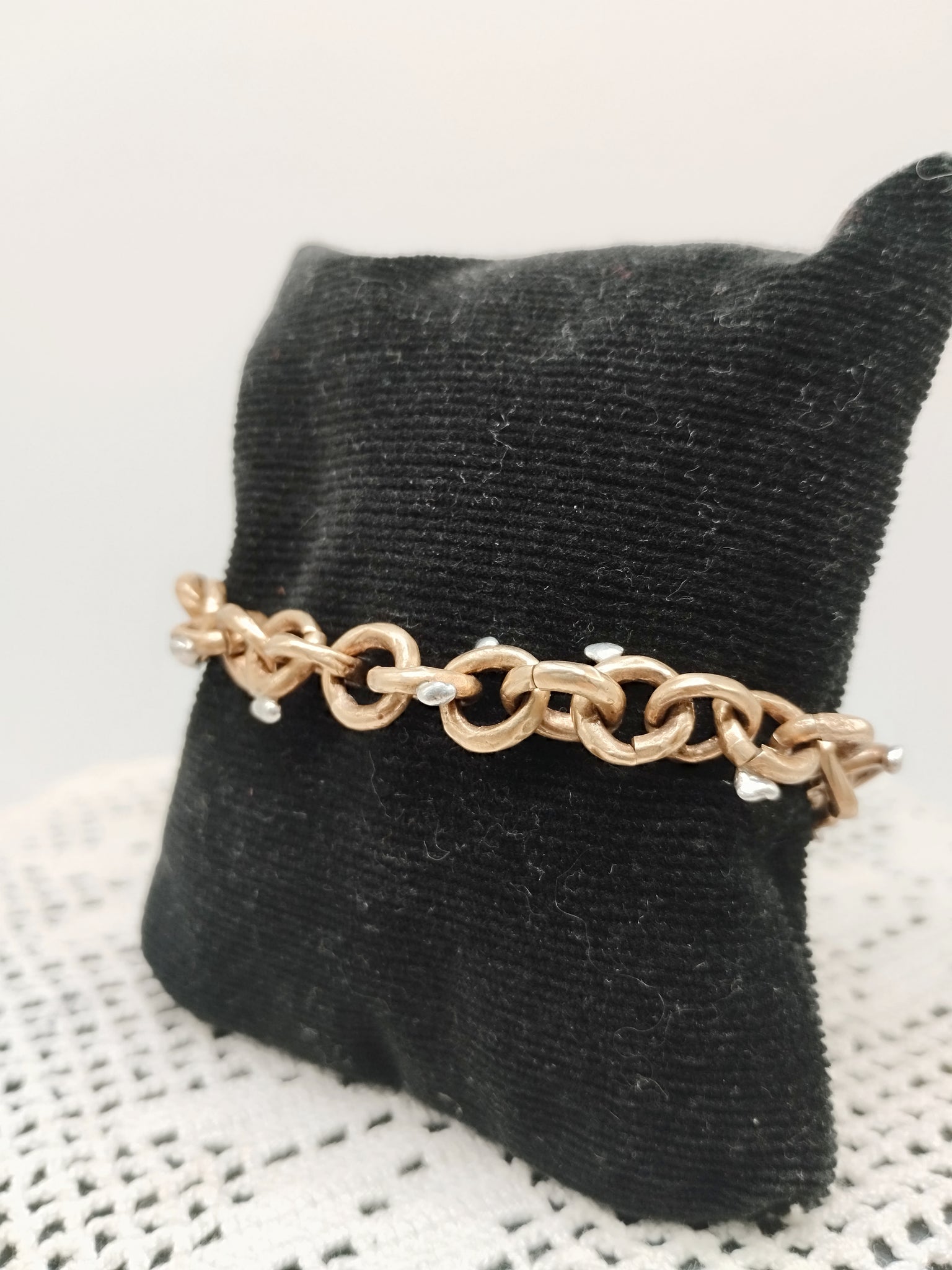 Bracciale realizzato da maglie simmetriche in bronzo, pepite in argento 925. Lunghezza sui 19 cm, è regolabile.