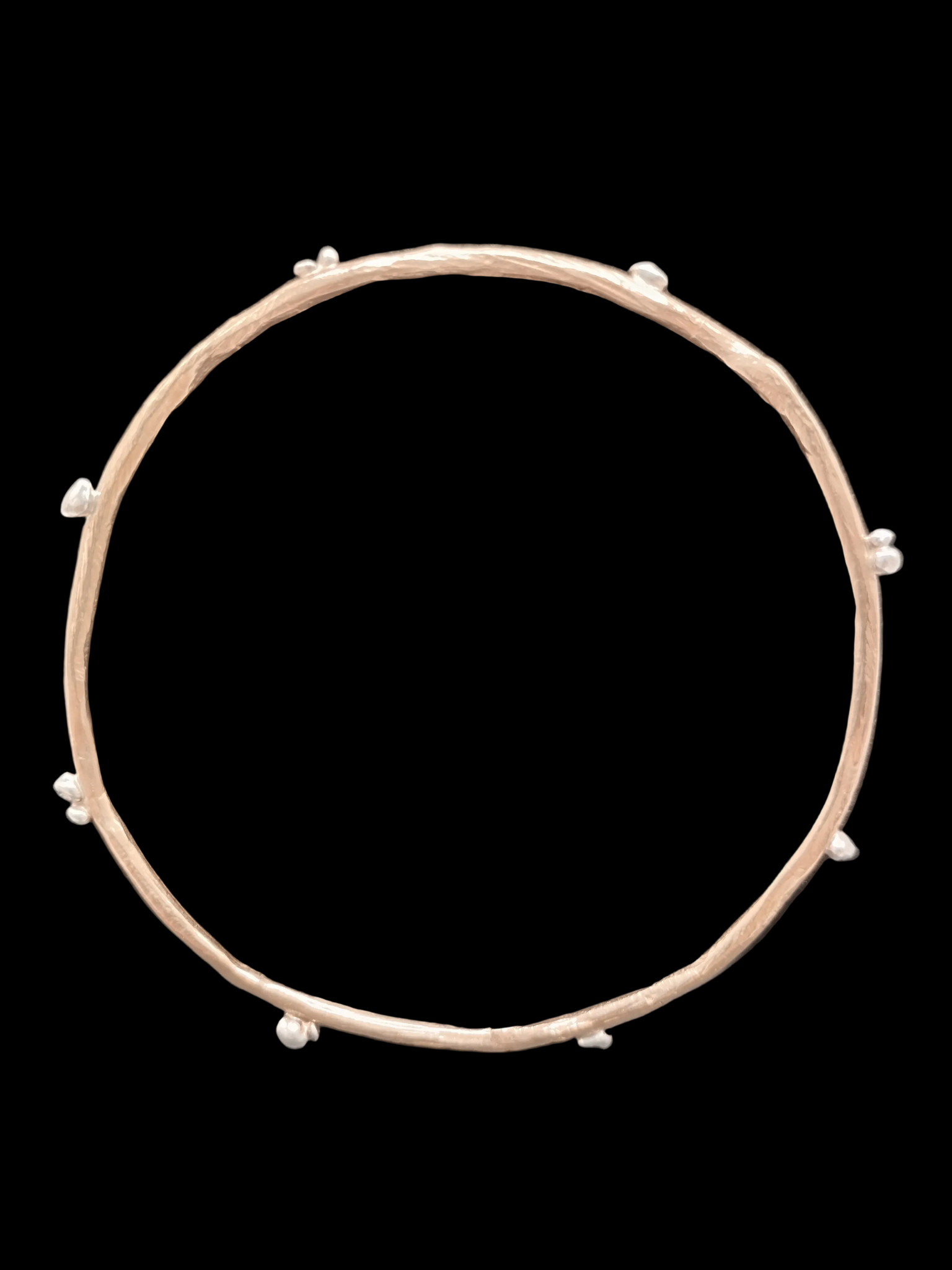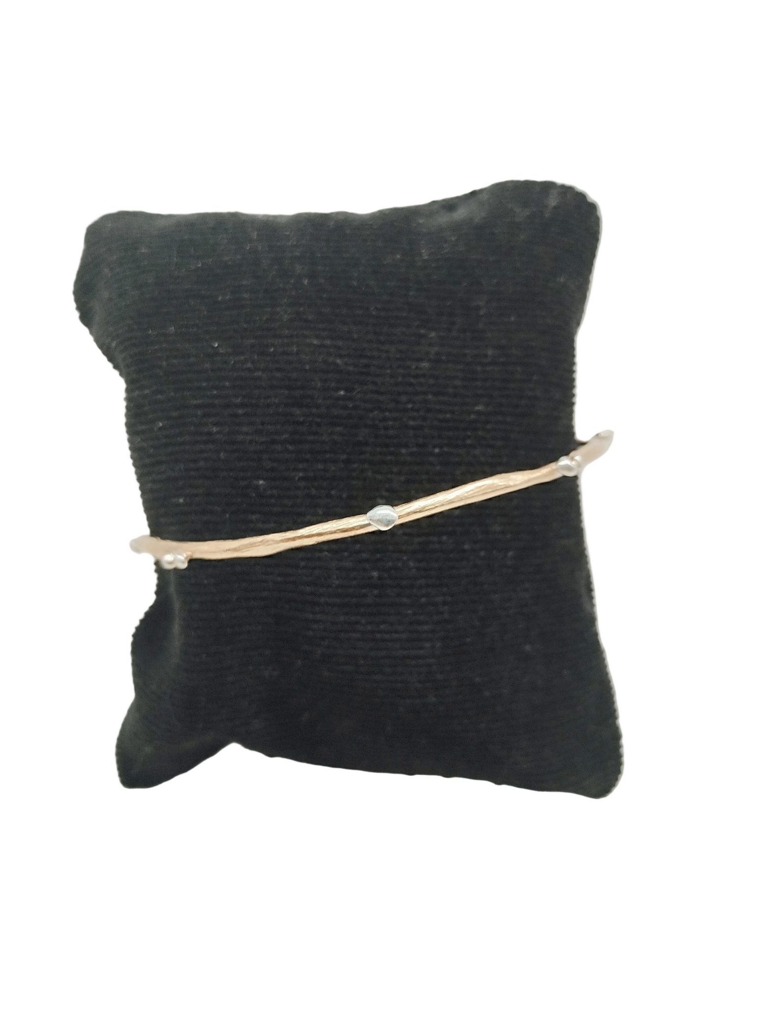 Questo luminoso bracciale sembra,  apparentemente, un semplice cerchietto,  reso Rock da queste pepite in argento 925, che gli conferiscono un' aspetto molto grintoso. Stupendo da solo, ancor di più, se indossato insieme ad altri bracciali !