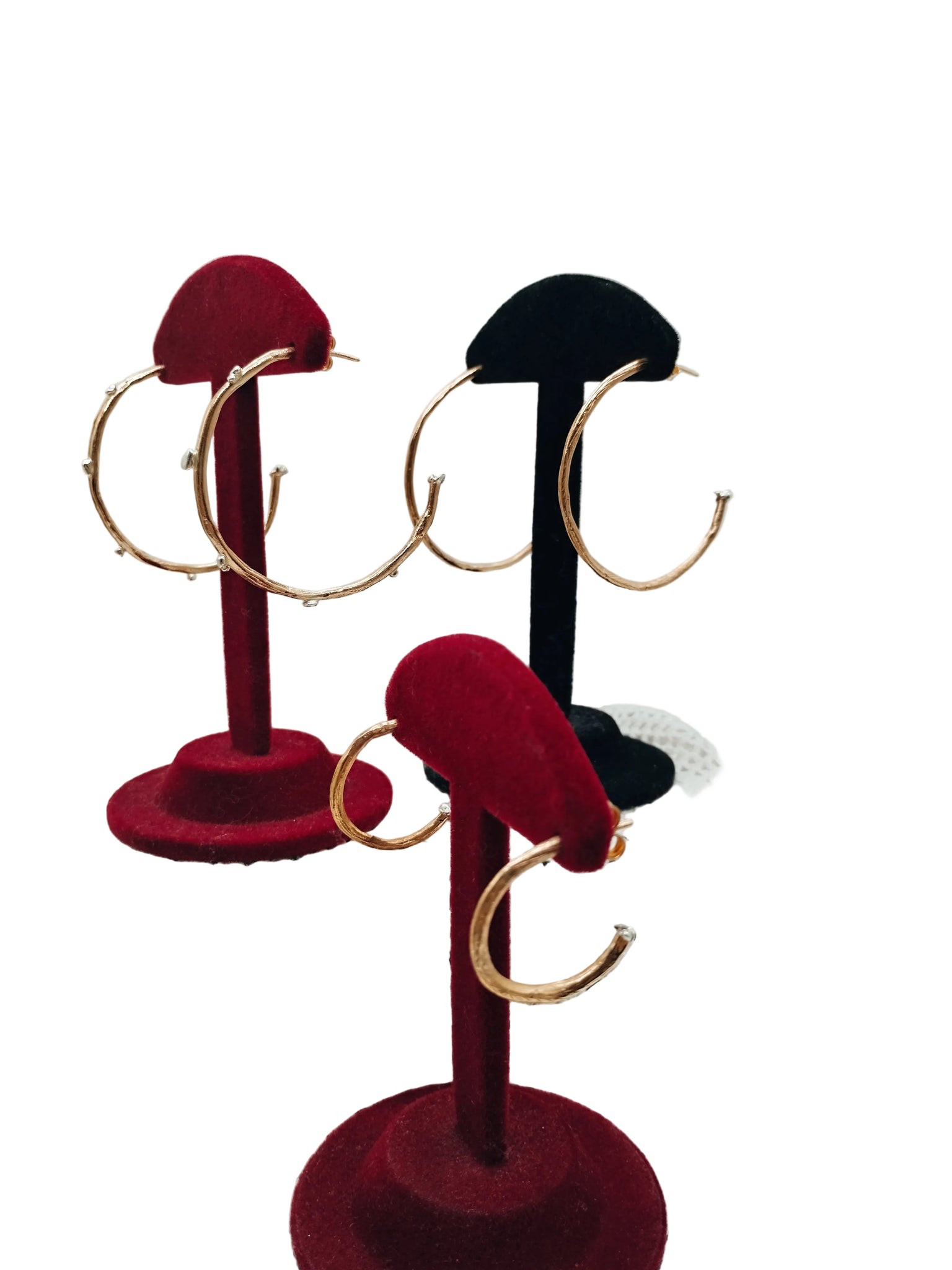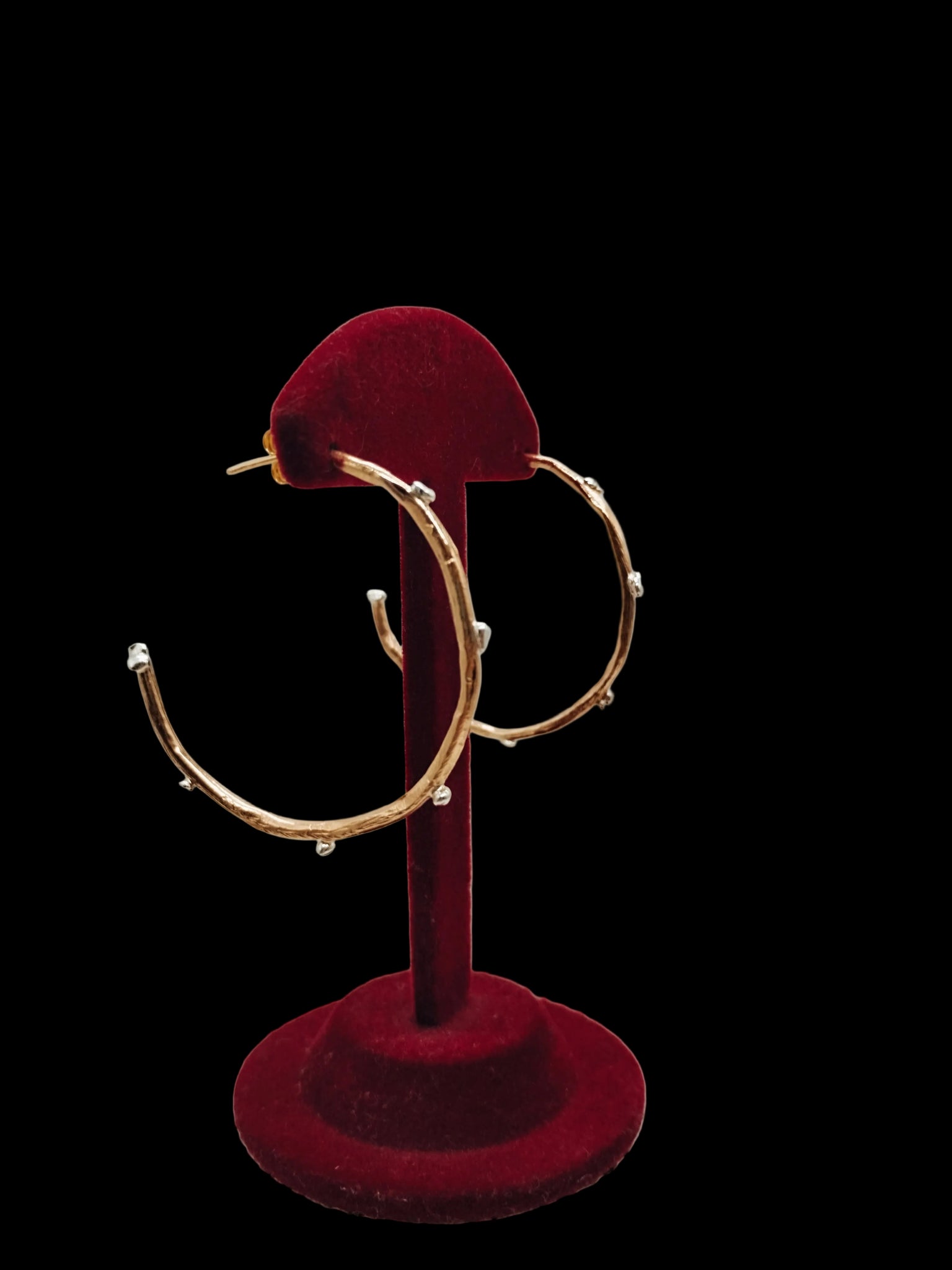 Questi grandi cerchi sono impreziositi dalla presenza di tante pepite ( piccole palline in argento 925), che gli conferiscono un mood Rock, per una donna decisa che ama osare. Esiste una versione con una sola pepita.