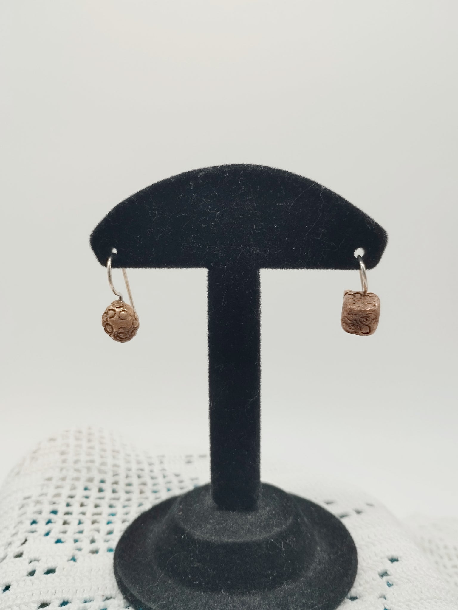 Orecchini corti in bronzo e monachella in argento 925.