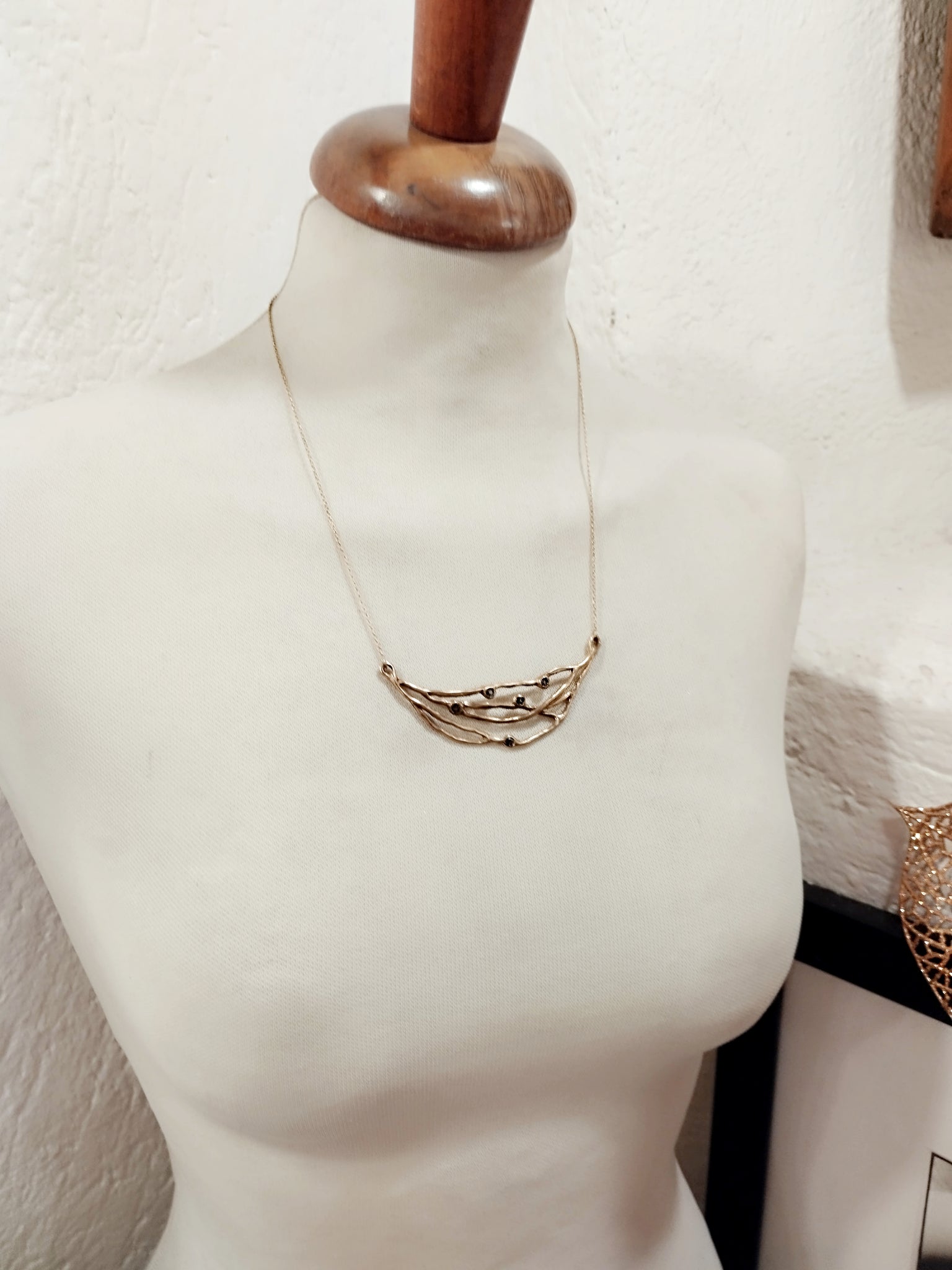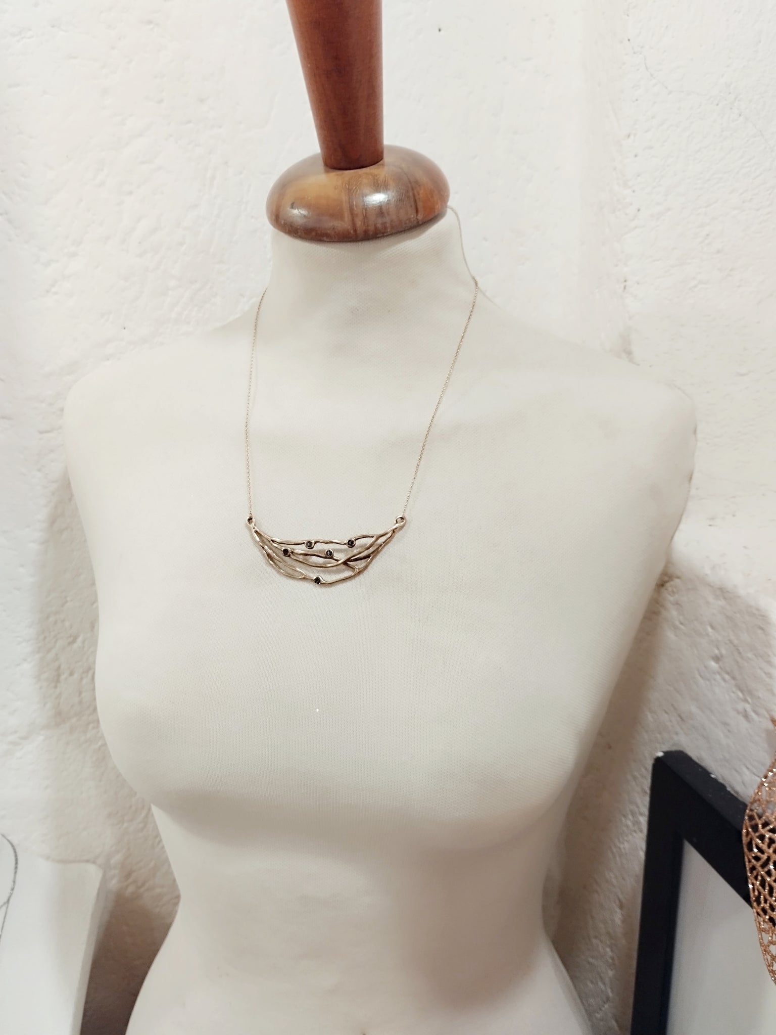 Collana in bronzo e pietre, lunghezza sui 50/ 55 cm.