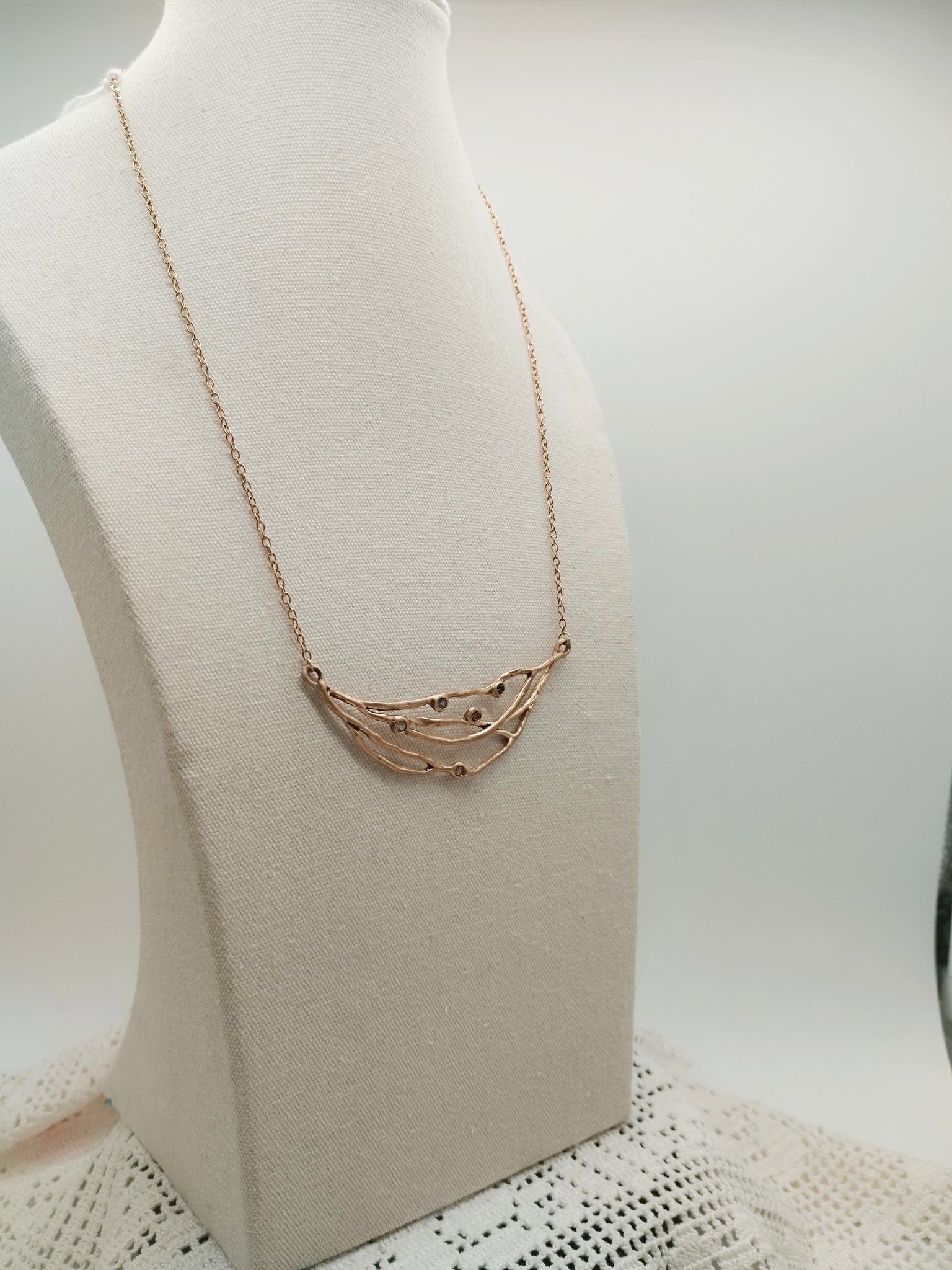 Collana in bronzo e pietre, lunghezza  sui 50/ 55 cm.