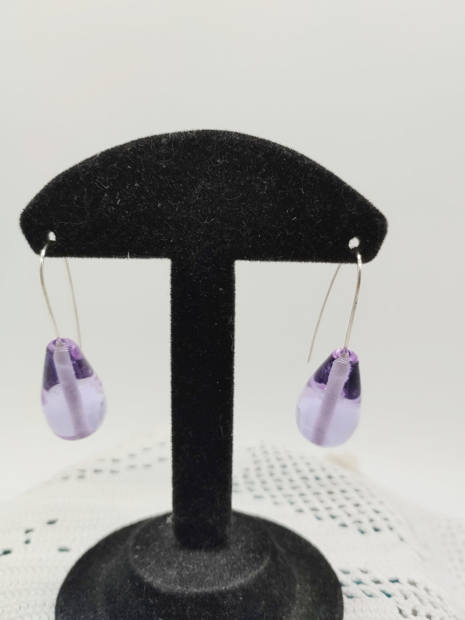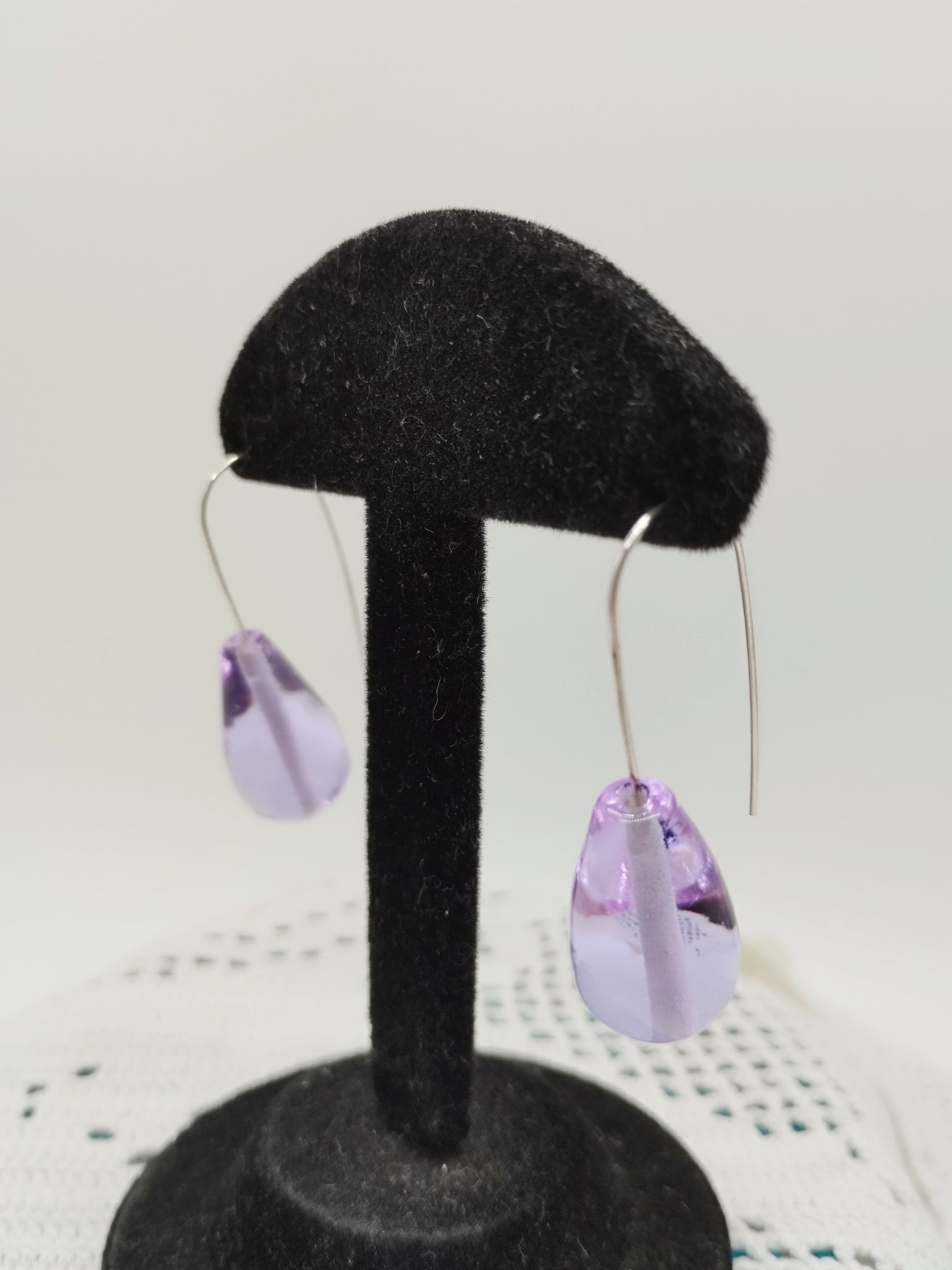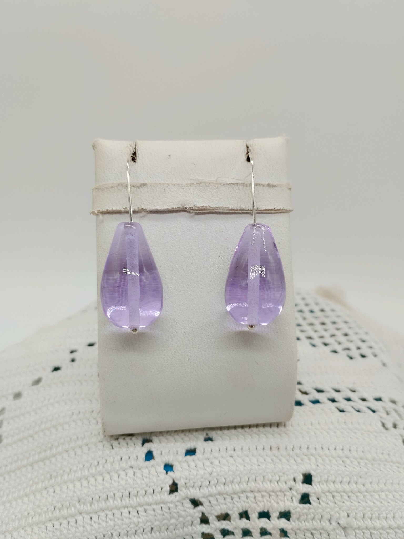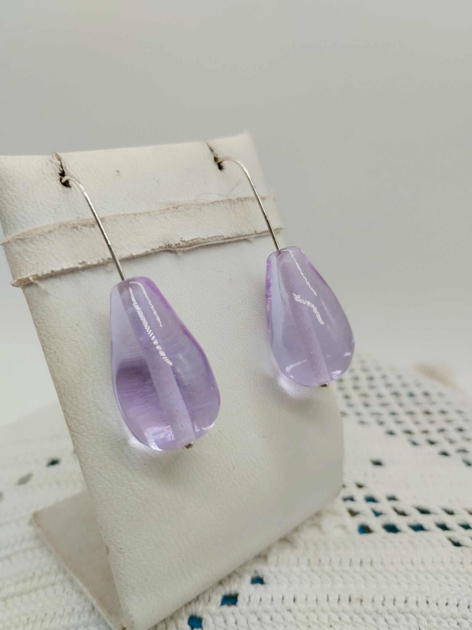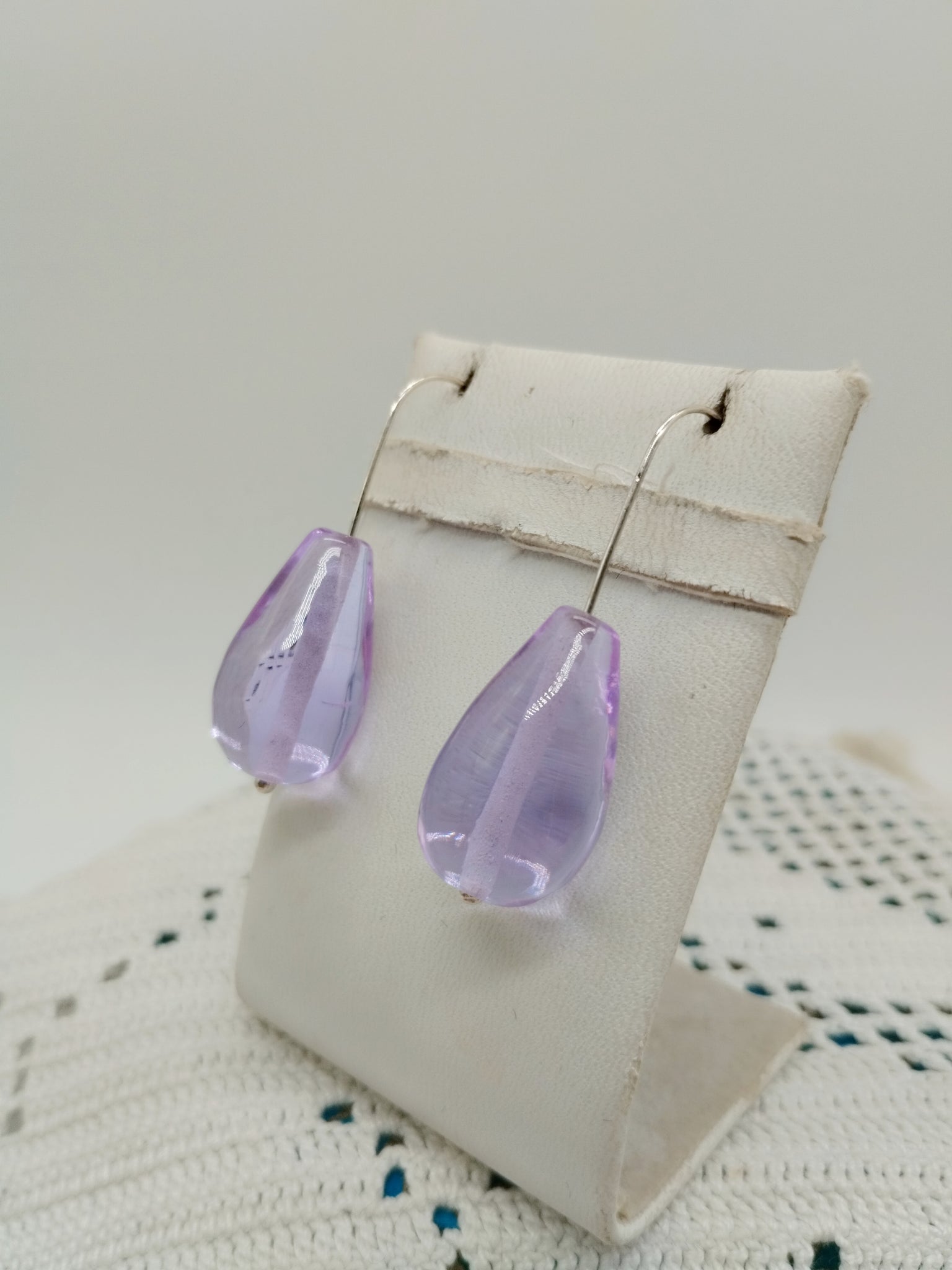 Orecchini intermedi, in vetro e monachella argento 925. Lunghezza sui 4,3 cm. Bijoux leggero ma al tempo stesso, non fragile !  La forma del vetro ricorda una goccia oppure una piccola pera