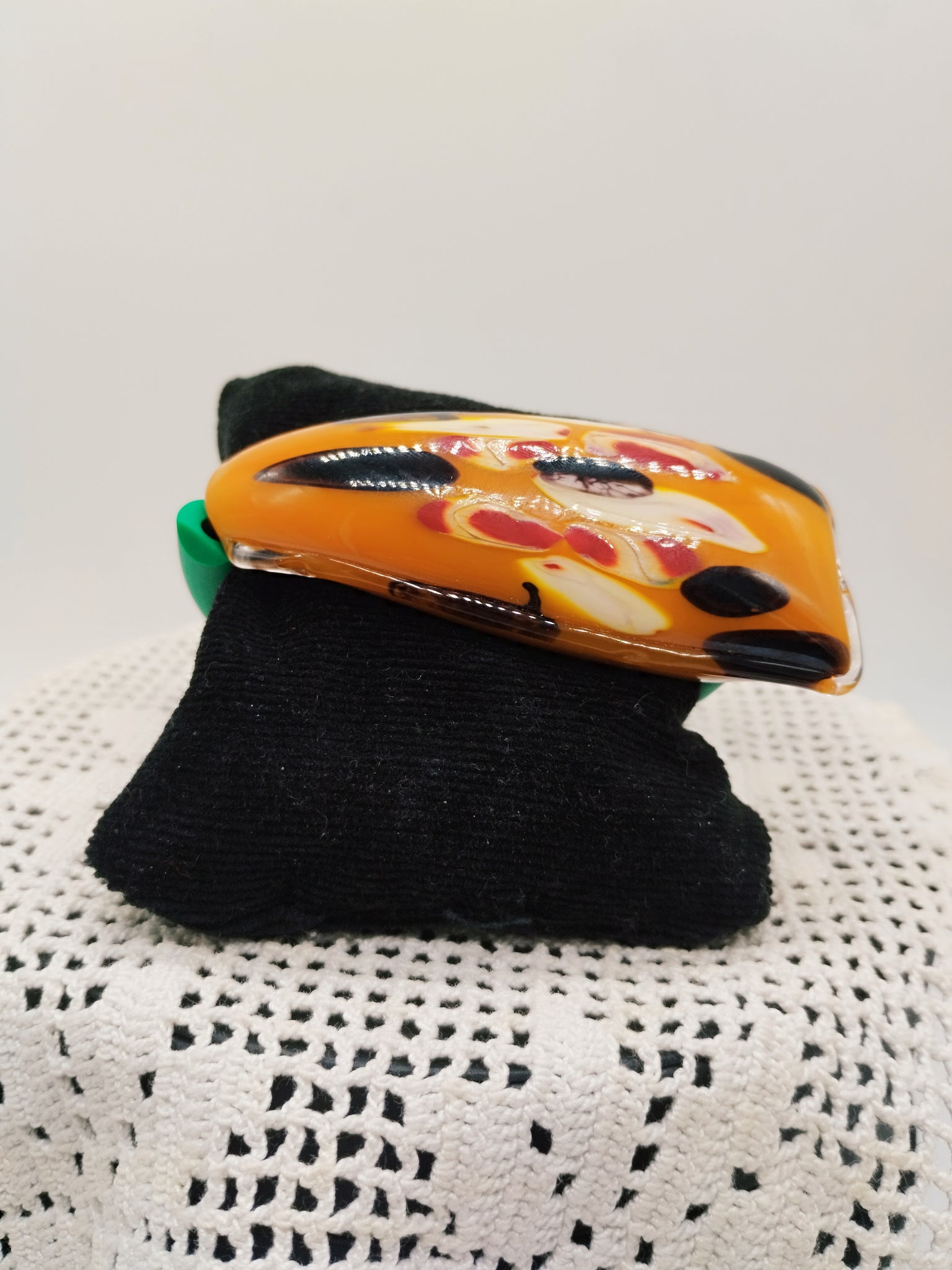 Bracciale in vetro e plastica. Per indossarlo basterà spingere la mano all' interno del bracciale e questo si allargherà.
